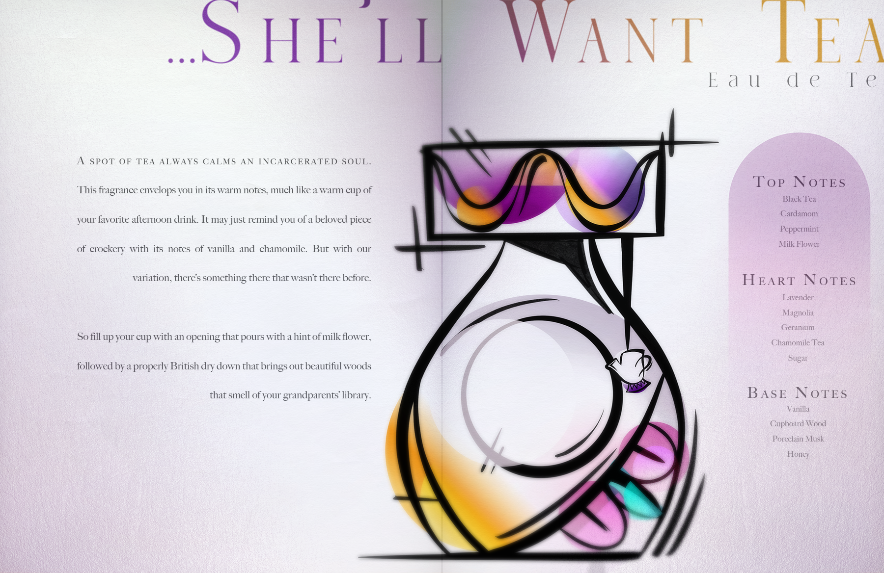 At the beginning of 2023, I fell into the world of fragrance. While not technically a book, I thought it would be fun to create a catalogue of perfumes and colognes inspired by this classic fairy tale.